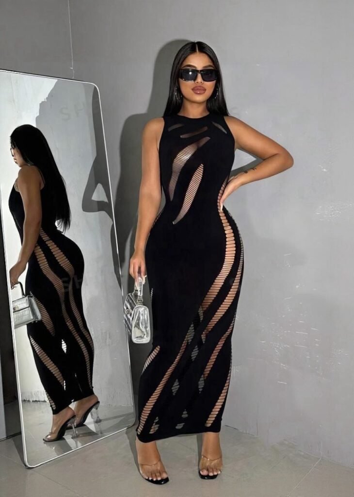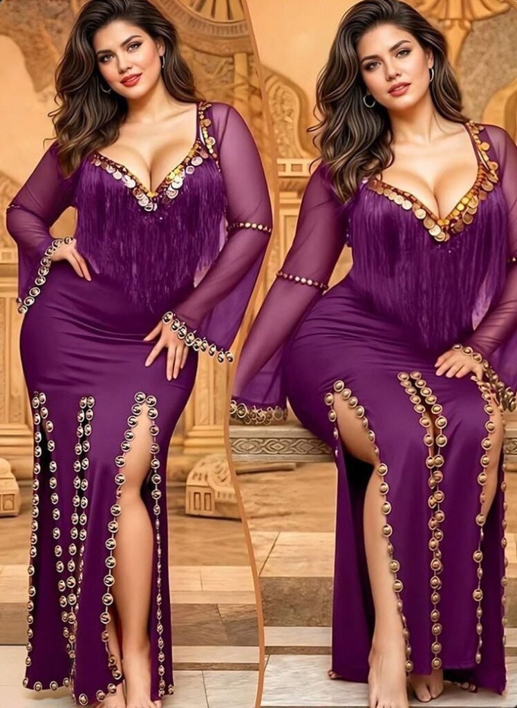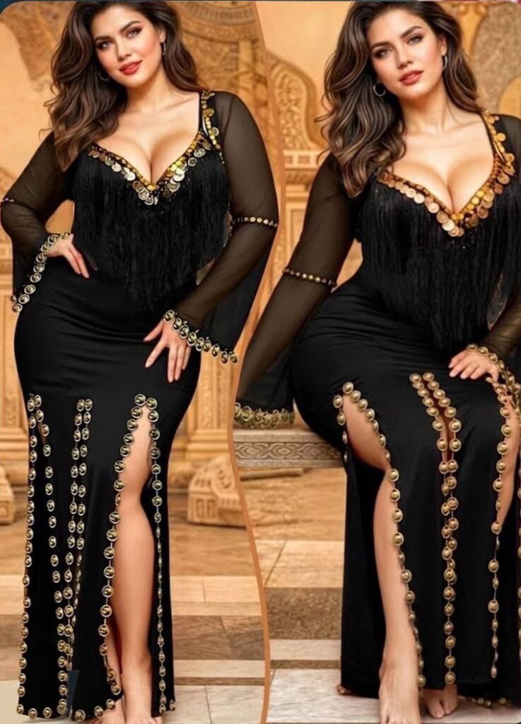 Elegant Fringe Maxi Dress with Gold Coin Embellishments