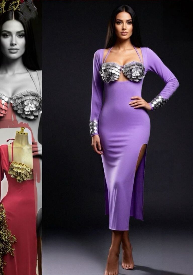 Elegant Plum Coins Embellished Maxi Dress