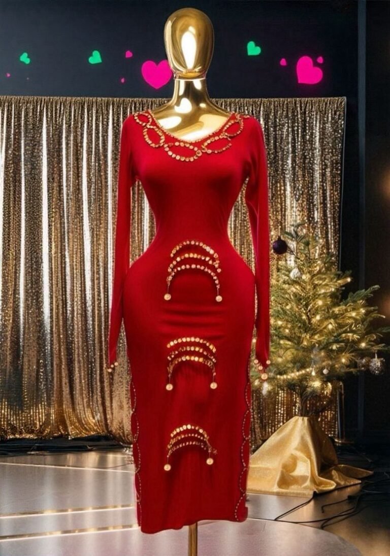 Elegant Rhinestone-Embellished Hourglass Midi Dress