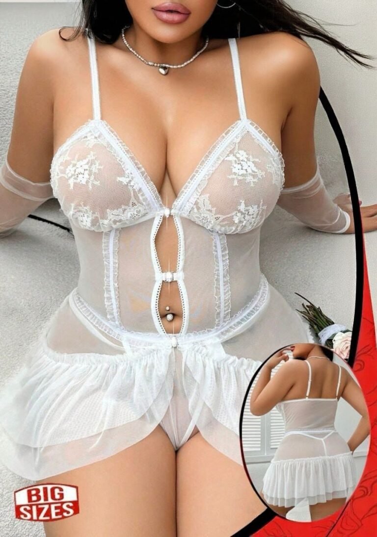 Exquisite Floral Lace Lingerie Set with Lace-Up Corset Top & Ruffled Mini Skirt