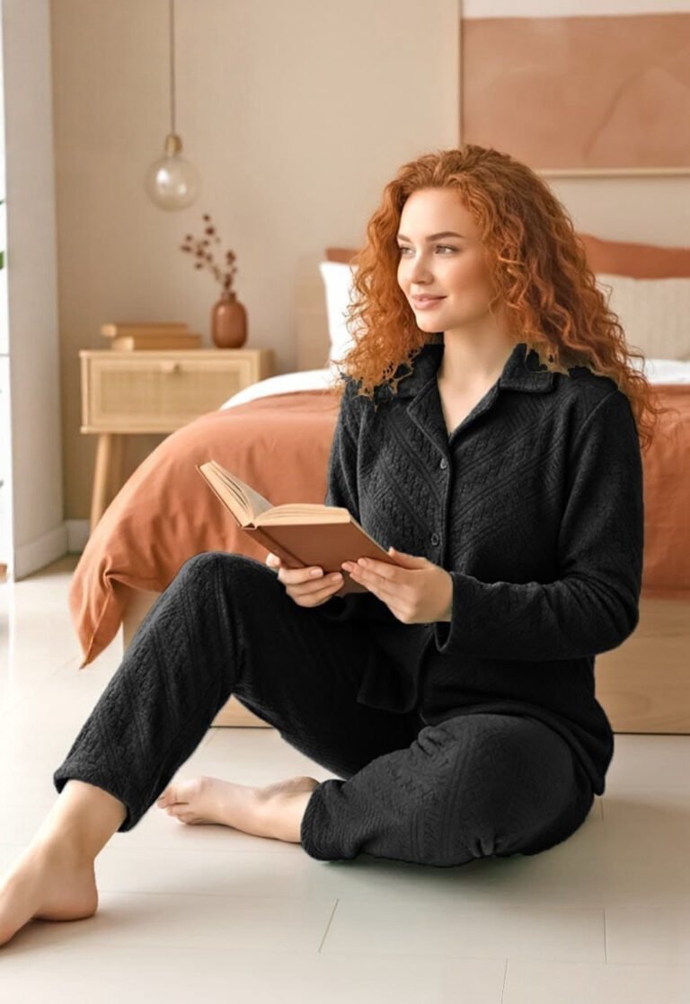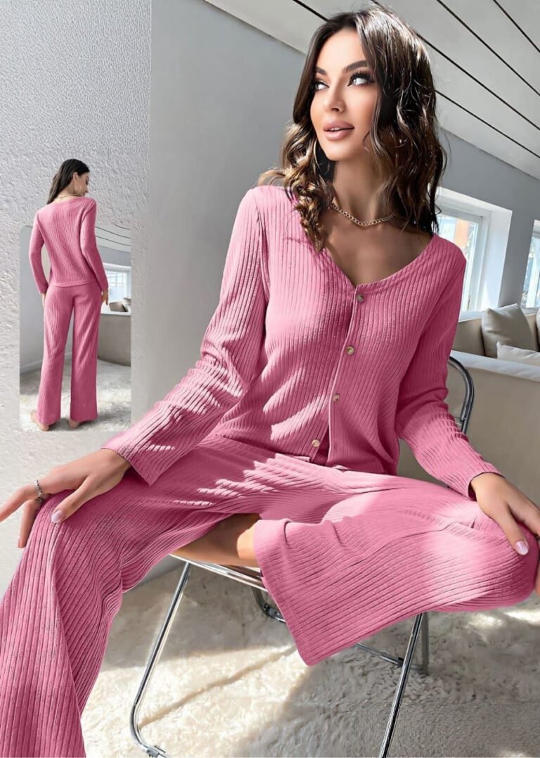 Women’s 2-Piece Rib-Knit Lounge Set – Hoodie & Wide-Leg Pants