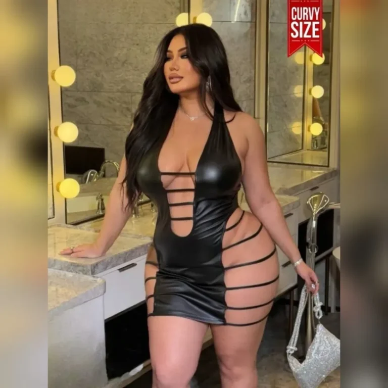 Sexy Faux Leather Halter Mini Dress – Curvy Fit Cut-Out Bodycon