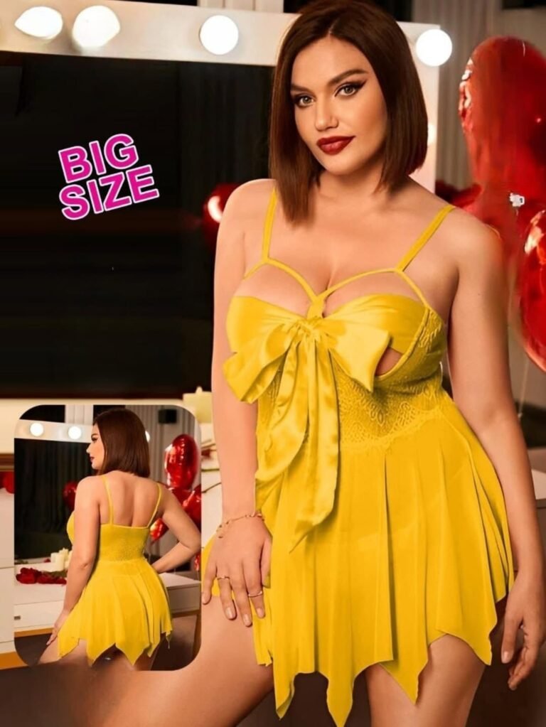 Plus Size Elegant Satin & Lace Babydoll with Oversized Front Bow