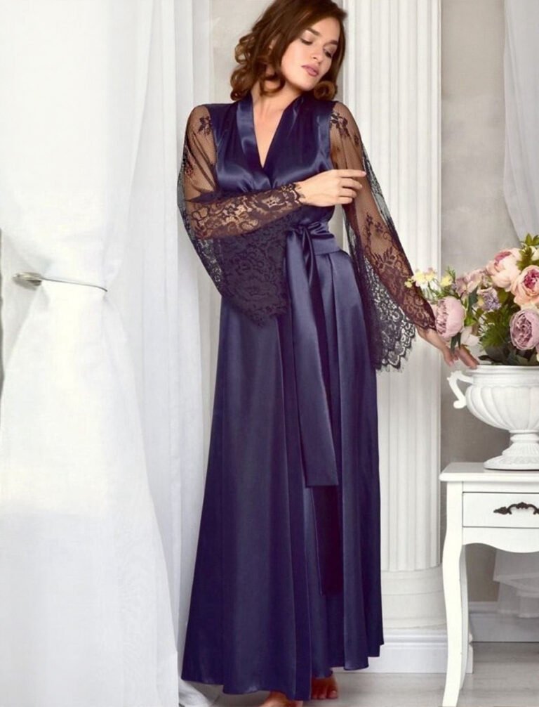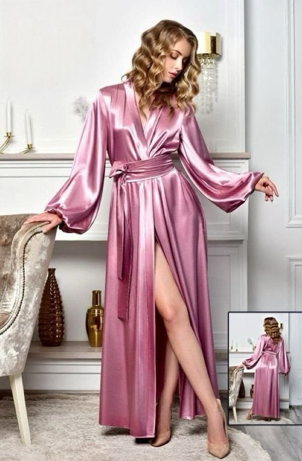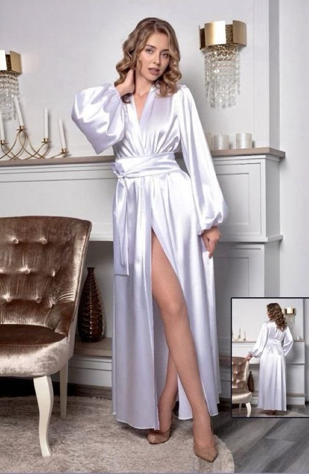 Satin Maxi Robe with Lantern Sleeves