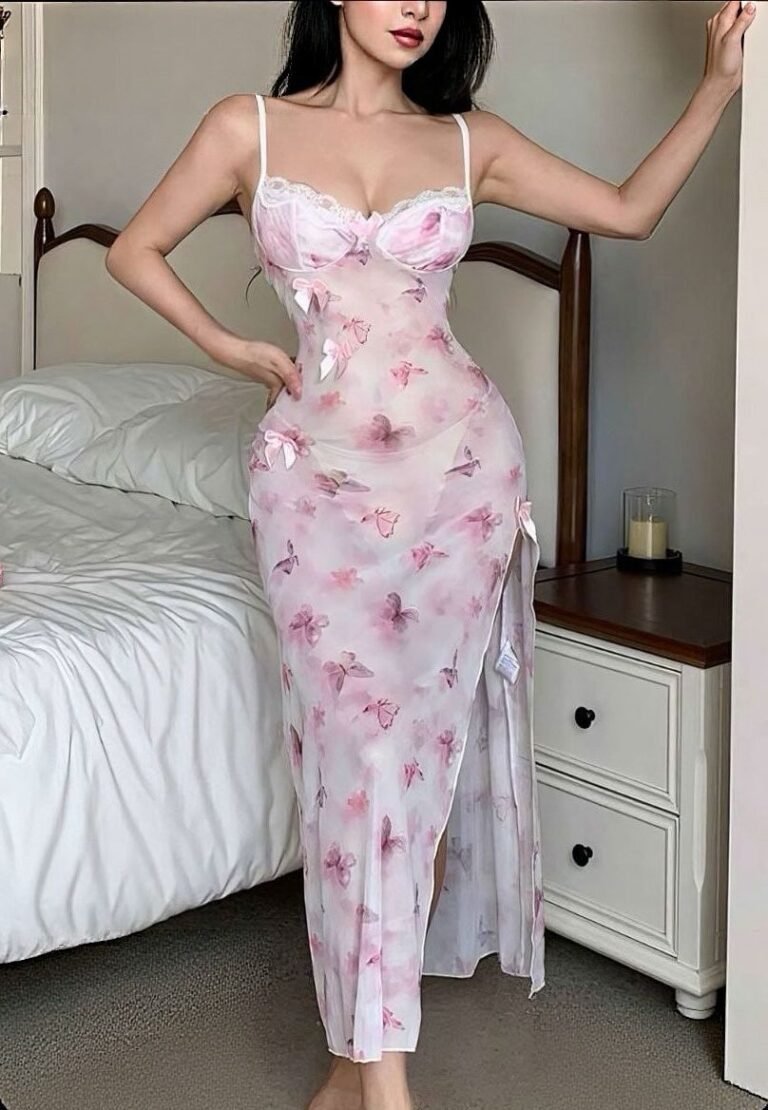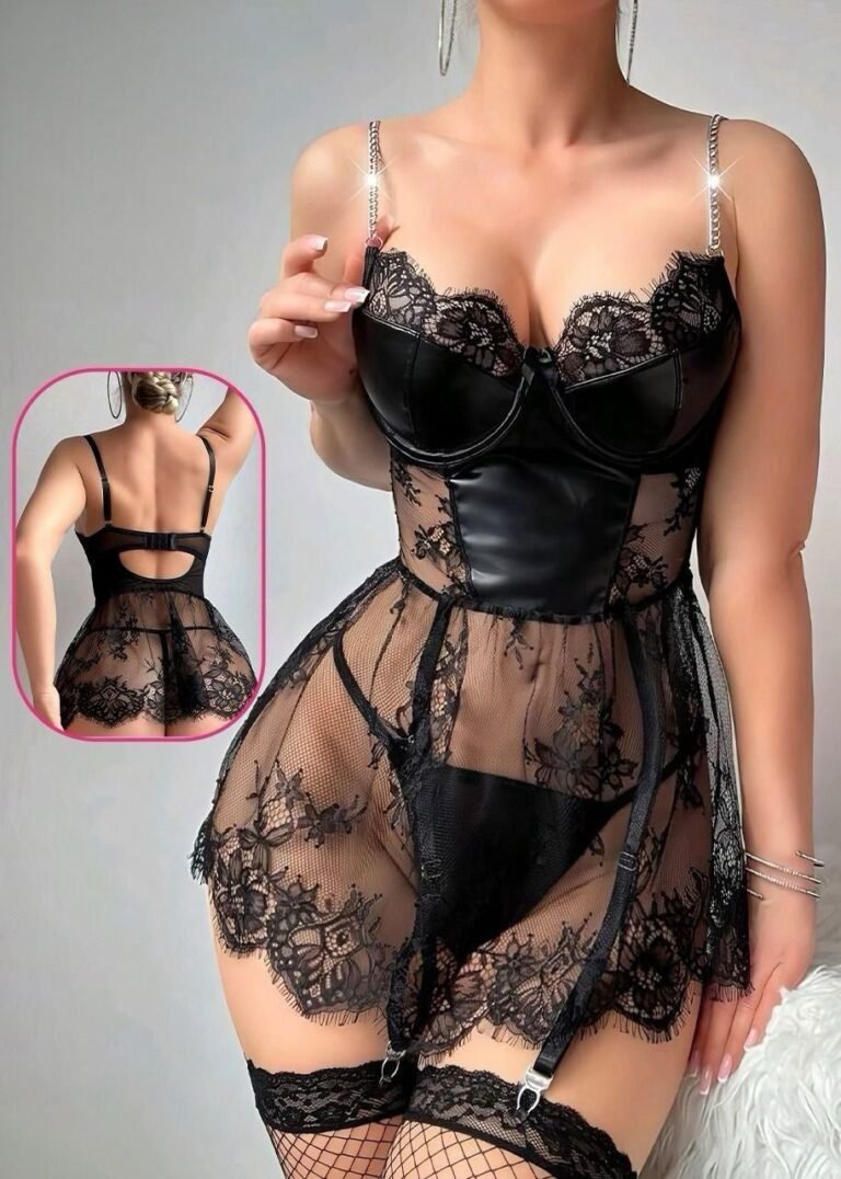Bold & Provocative Satin Lingerie Set with Chain Harness and Heart Detail
