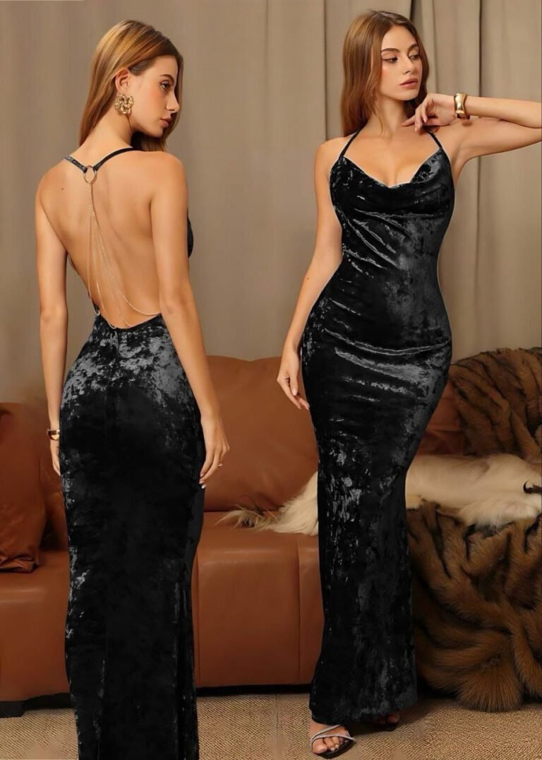 Elegant Velvet Backless Maxi Dress with Chain Detail