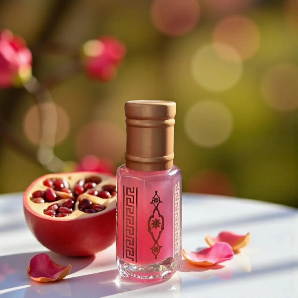 مسك طبيعي، خلاصة رمان، عنبر، كراميل، مكونات عطرية.