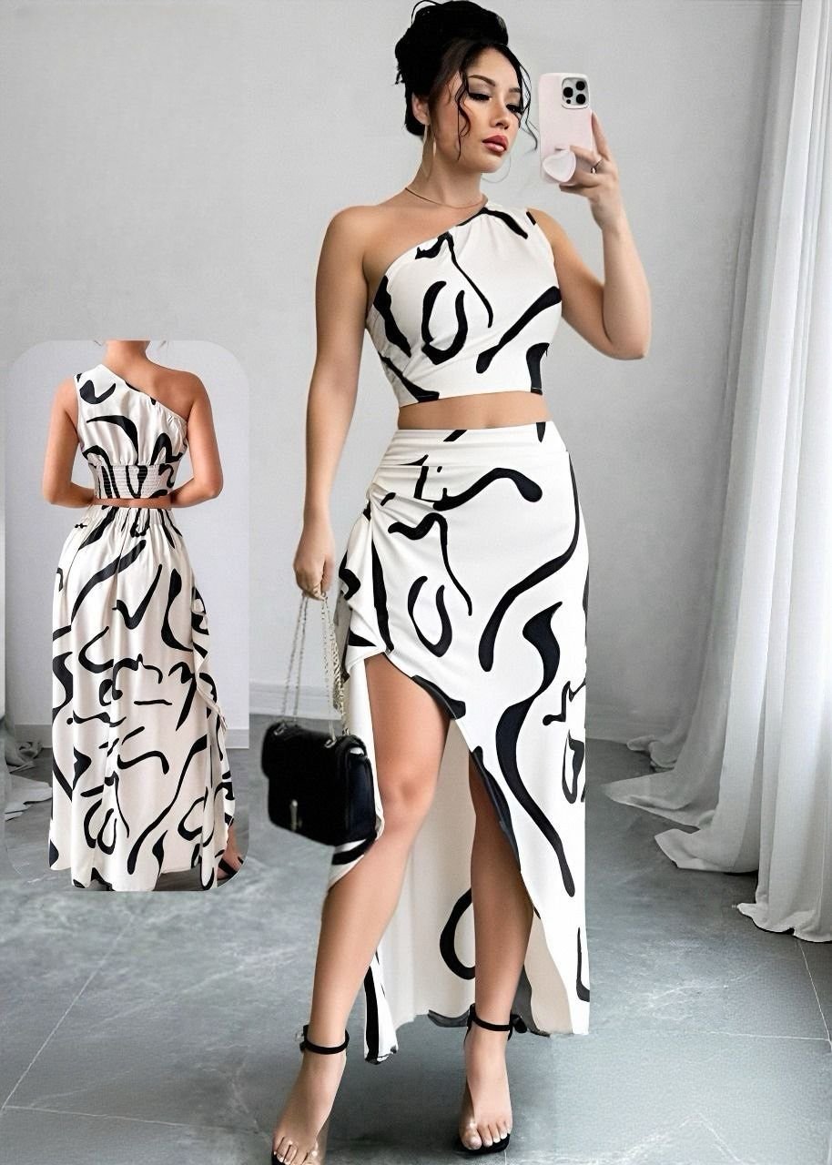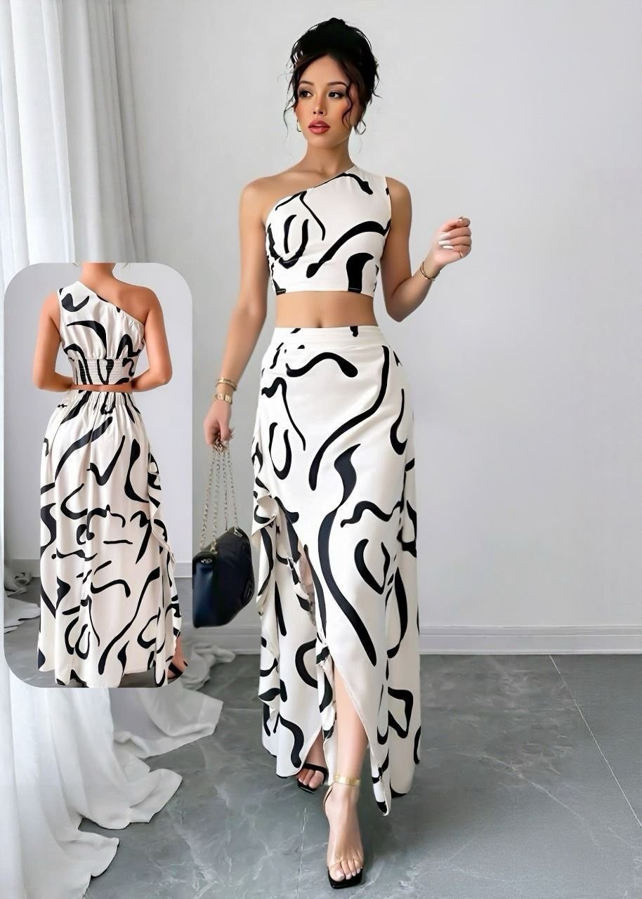 Be the first to review “Abstract Print One-Shoulder Maxi Set” Cancel reply