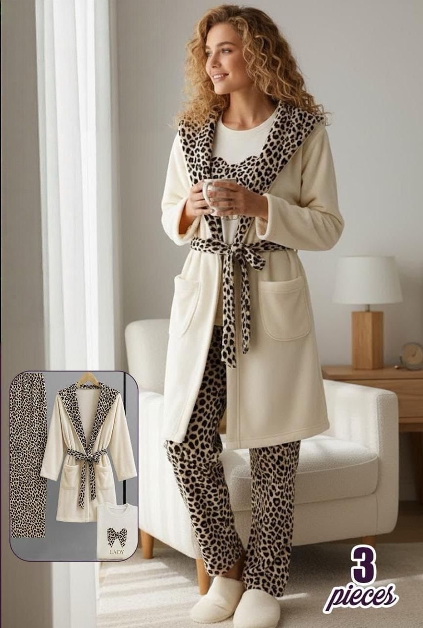 Elegant Leopard Print 2-Piece Pajama Set with Lace Detailing