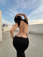 Be the first to review “Butterfly Accent Criss-Cross Backless Maxi Dress”