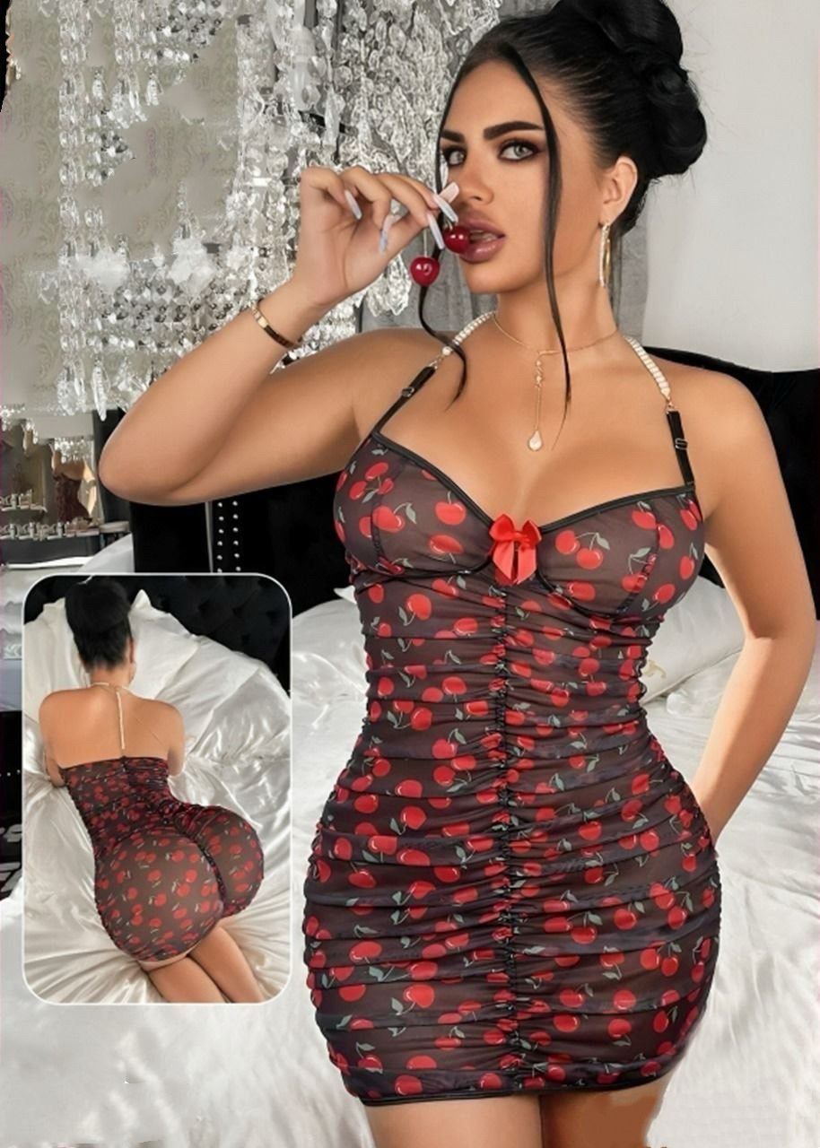 Be the first to review “Cherry Print Ruched Mesh Bodycon Mini Dress” Cancel reply