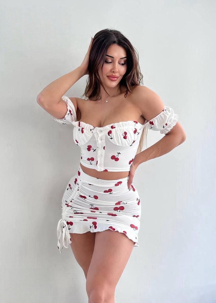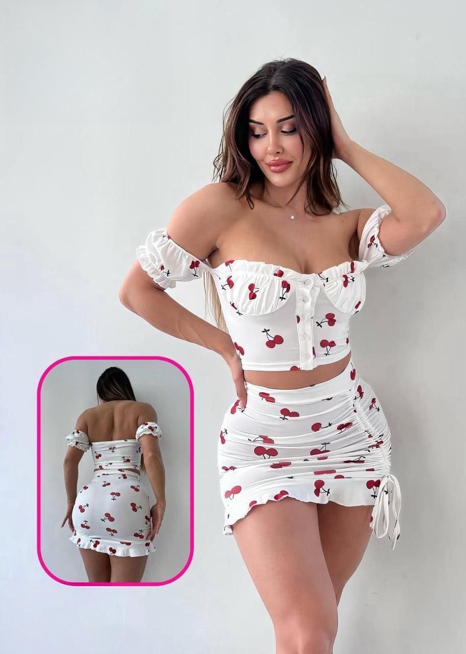 Be the first to review “Cherry Print Ruched Two-Piece Set” Cancel reply
