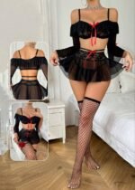 Be the first to review “Chic 4-Piece Black Lace & Mesh Lingerie Set with Red Ribbon Accents” Cancel reply