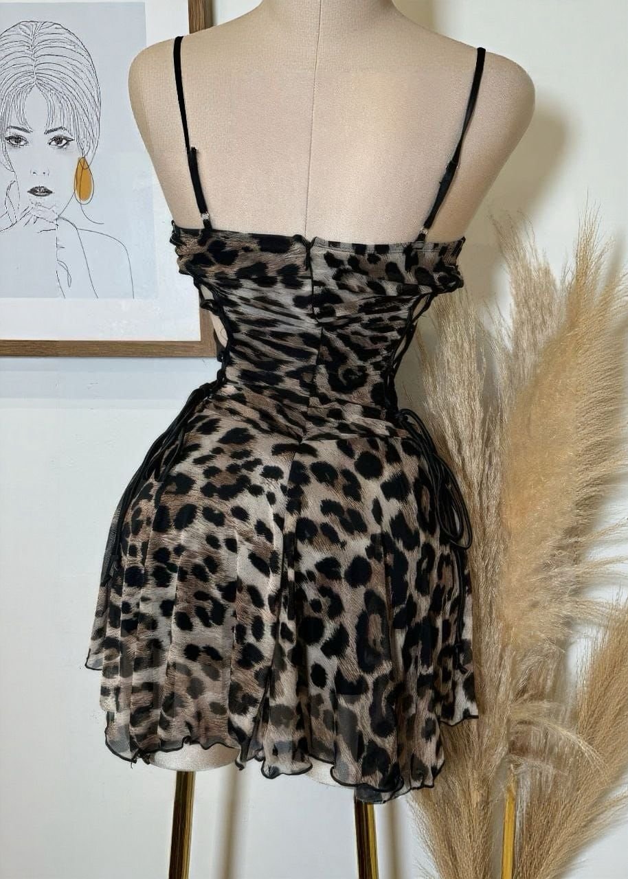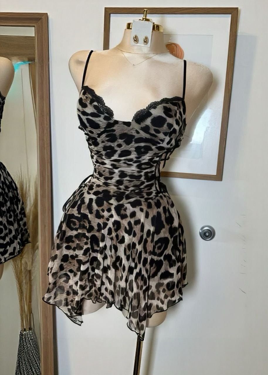 Be the first to review “Chic Leopard Print Mini Dress with Lace Trim and Side-Tie Detail” Cancel reply