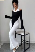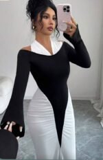 Be the first to review “Contrast Mock-Layer Maxi Dress with Bell Sleeves” Cancel reply