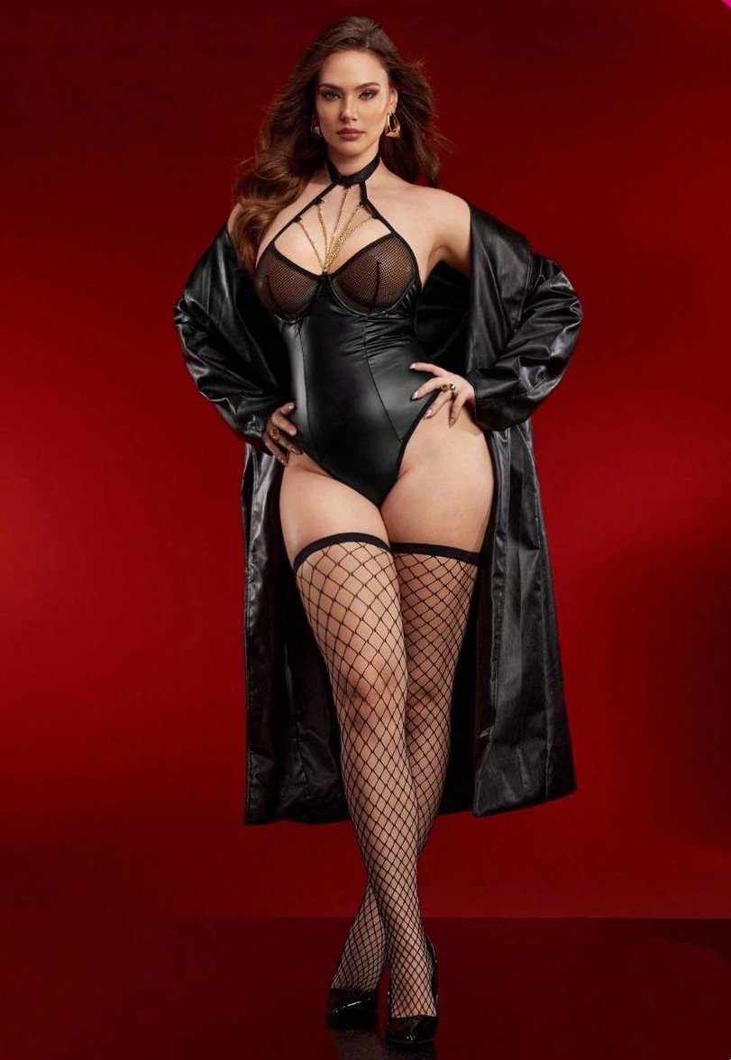 Dark Glamour Faux-Leather Bodysuit Set