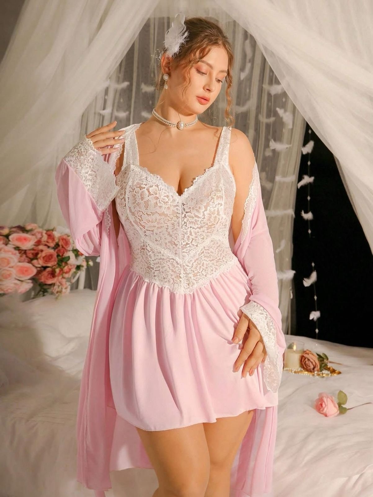 Elegant 2-Piece Lace Lingerie & Robe Set