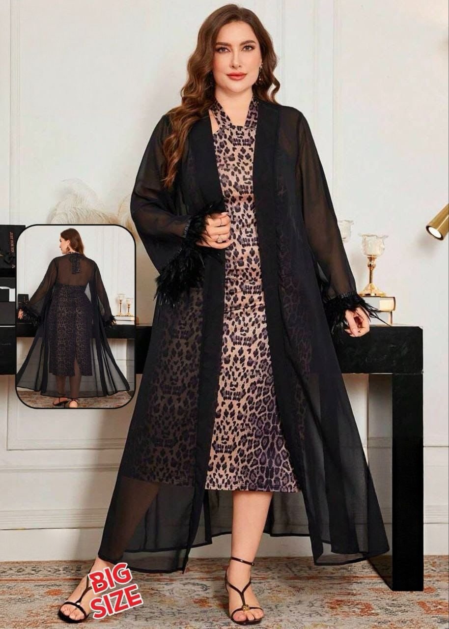 Be the first to review “Elegant 2-Piece Leopard Print Midi Dress & Chiffon Cape Set” Cancel reply