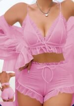Elegant 3-Piece Ruffle Trim Lounge & Sleepwear Set