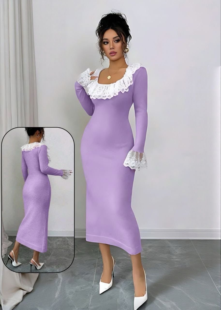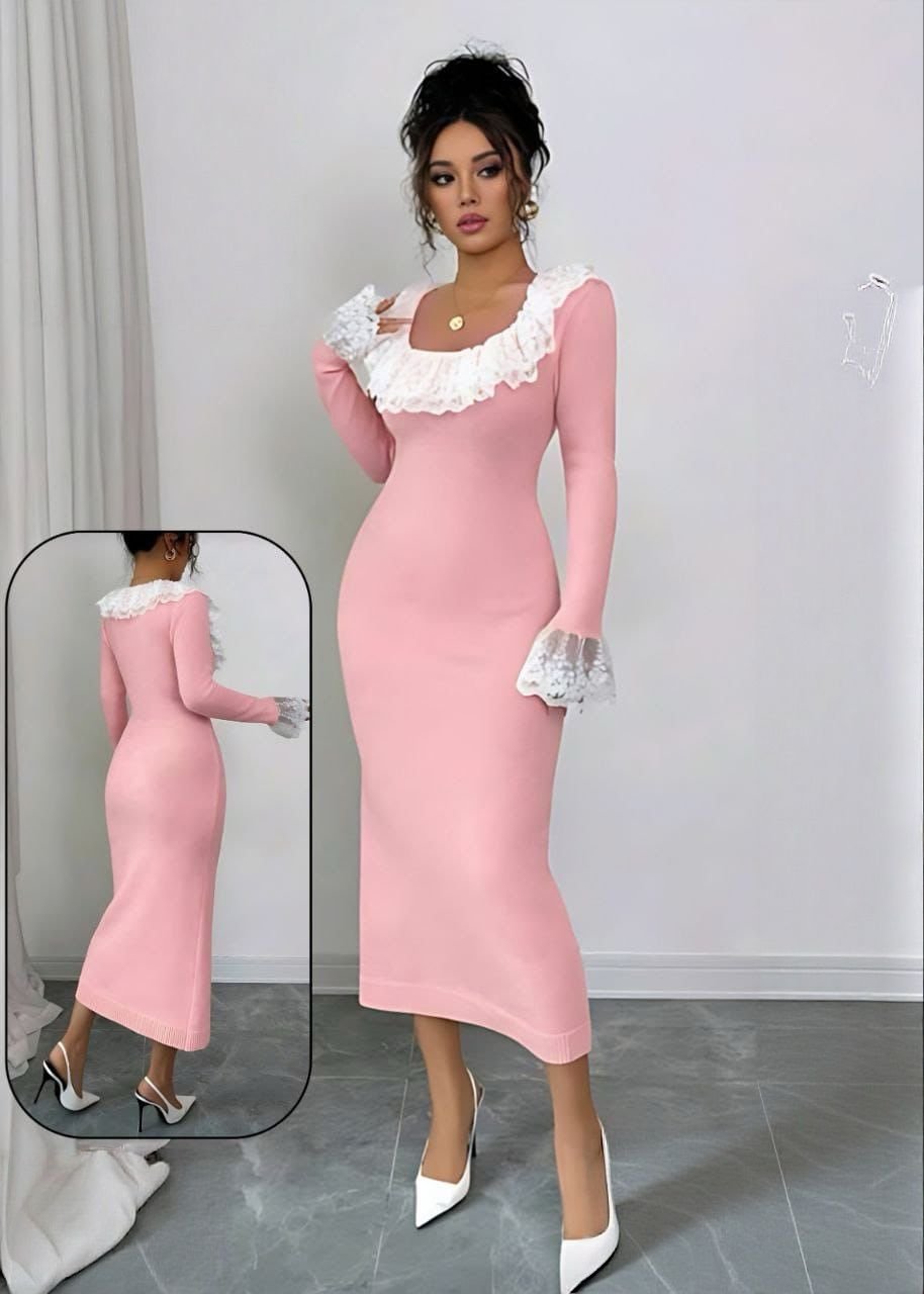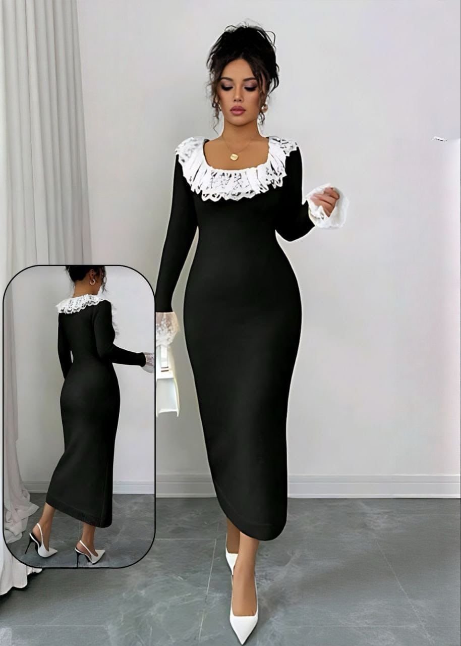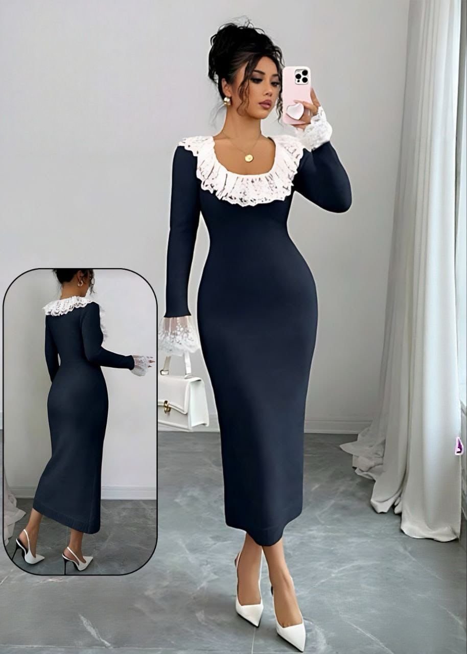 Be the first to review “Elegant Bodycon Midi Dress with Contrast Lace Collar” Cancel reply