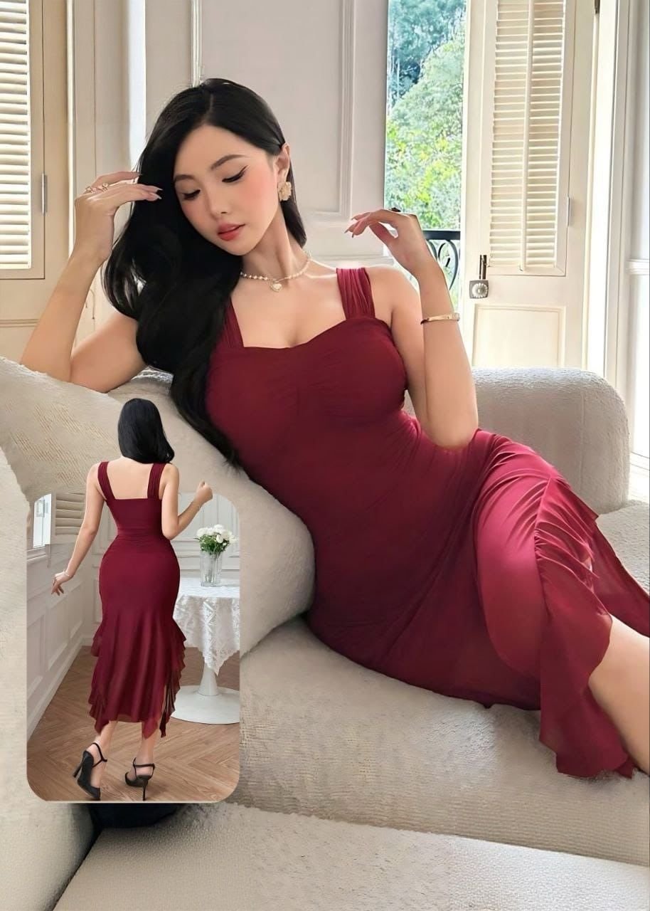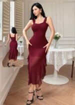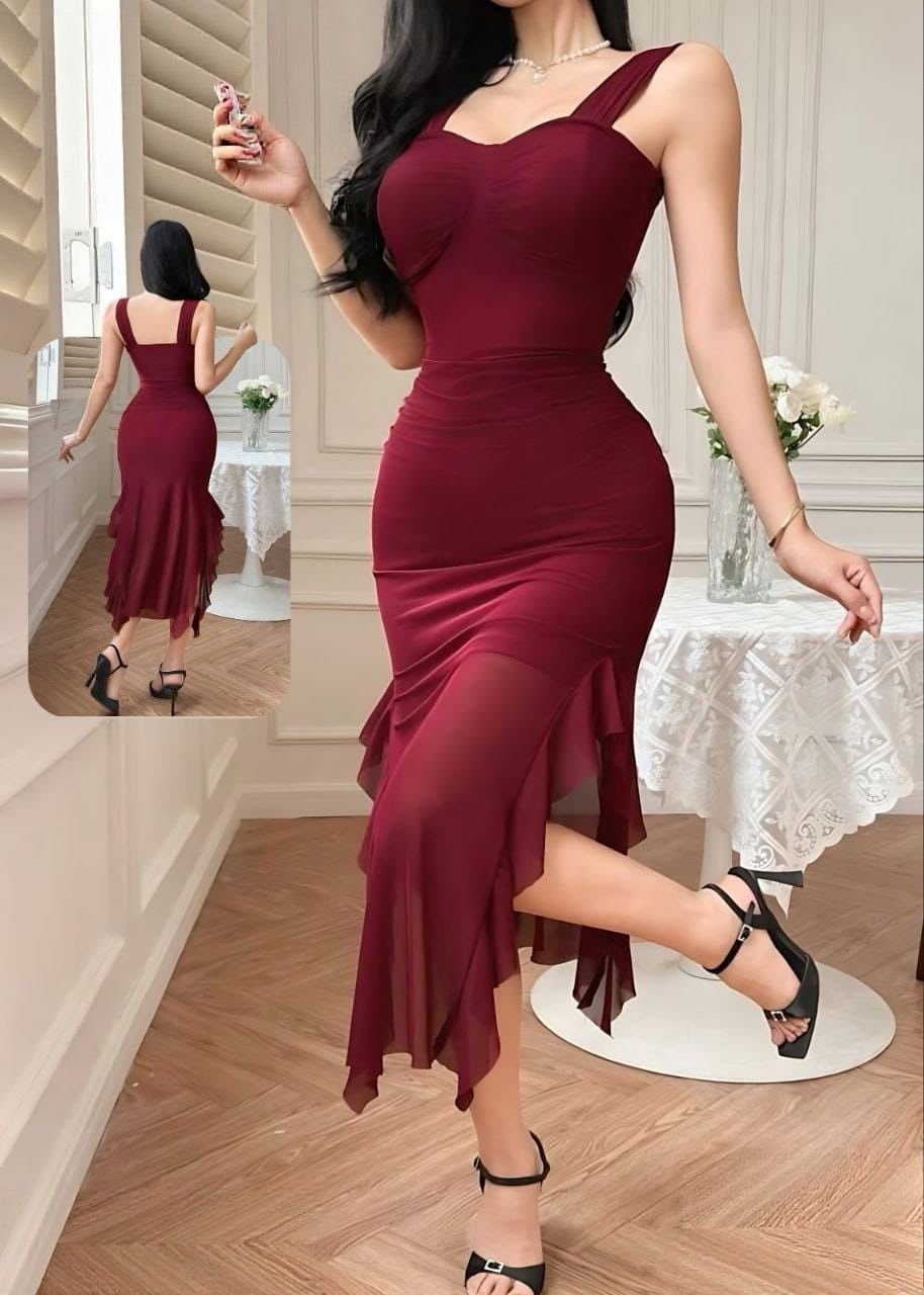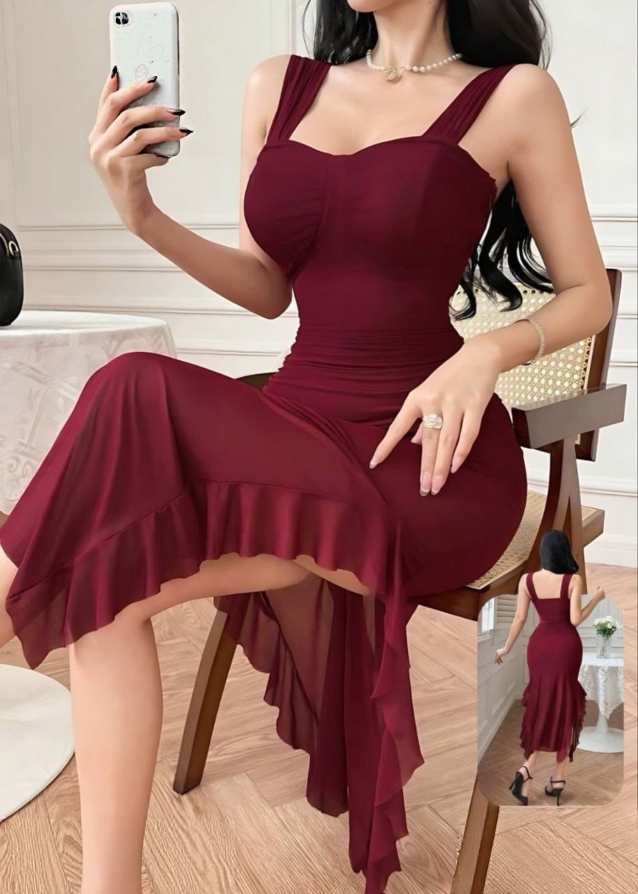 Be the first to review “Elegant Burgundy Ruffled Mermaid Midi Dress” Cancel reply