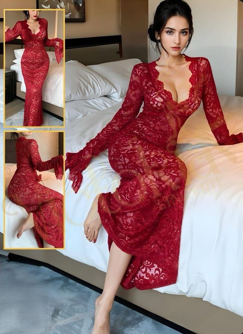 Be the first to review “Elegant Deep Red Lace Maxi Gown” Cancel reply