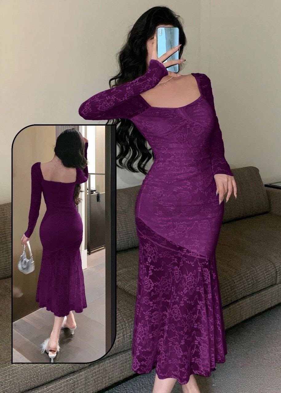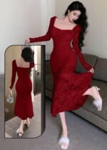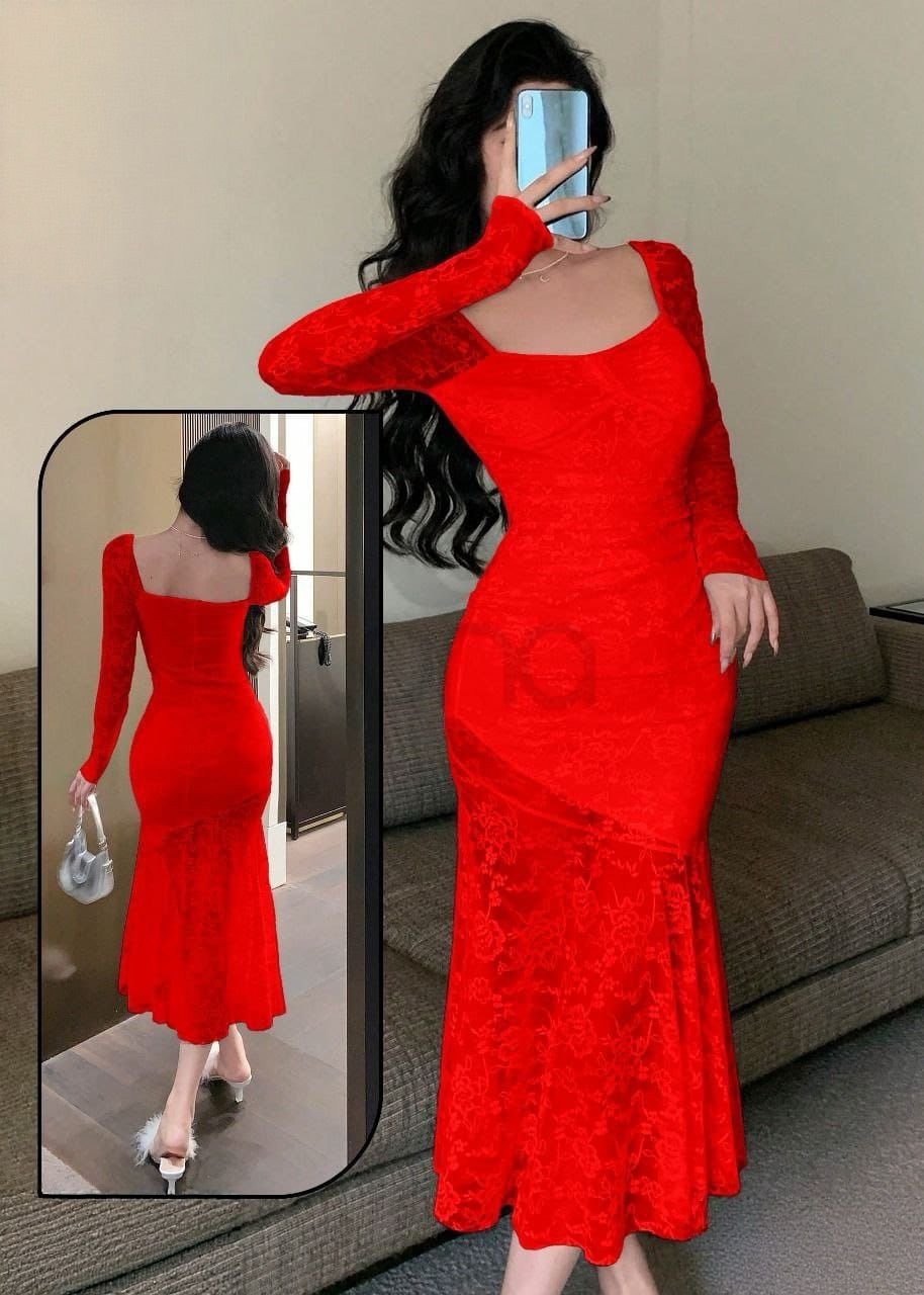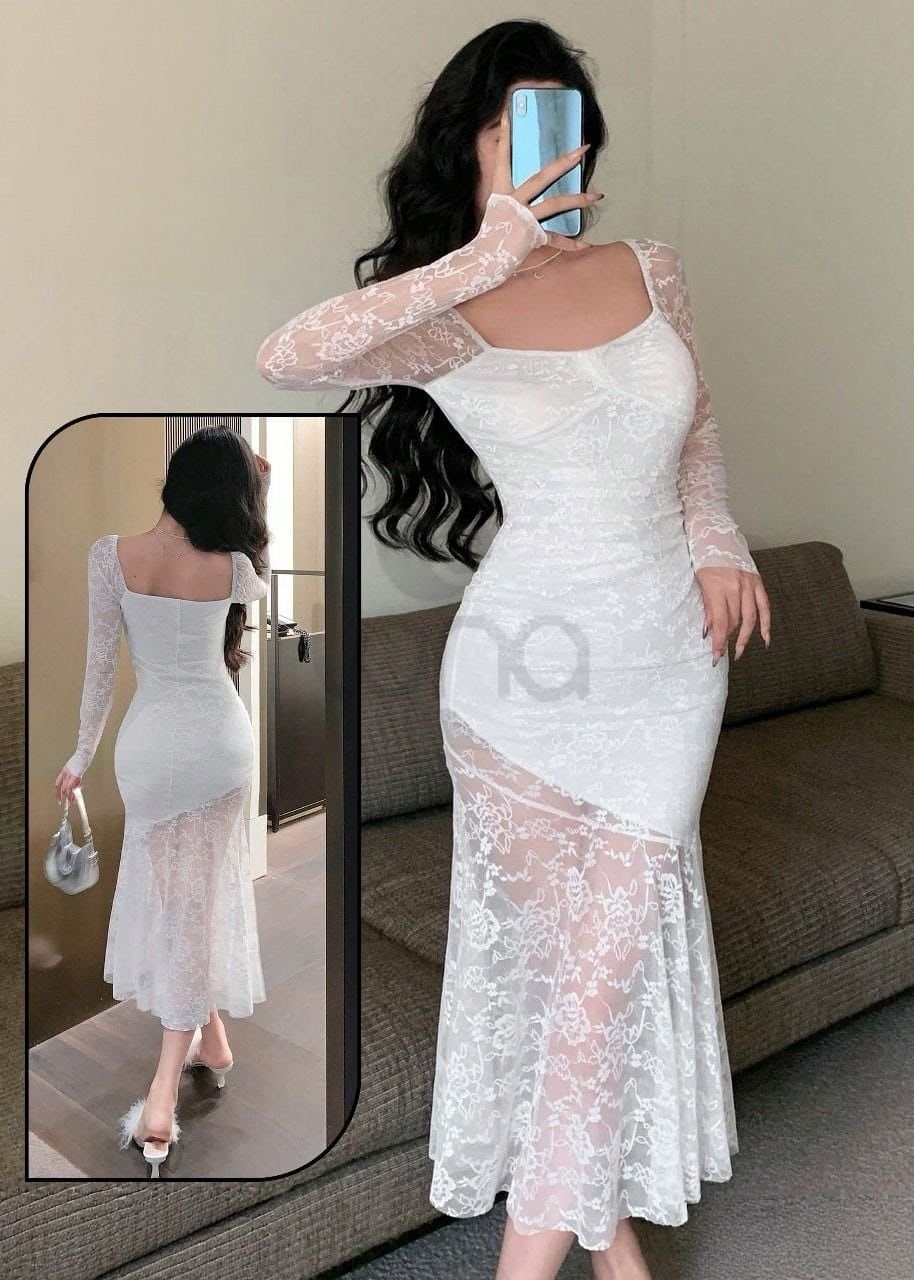 Be the first to review “Elegant Floral Lace Mermaid Midi Dress”