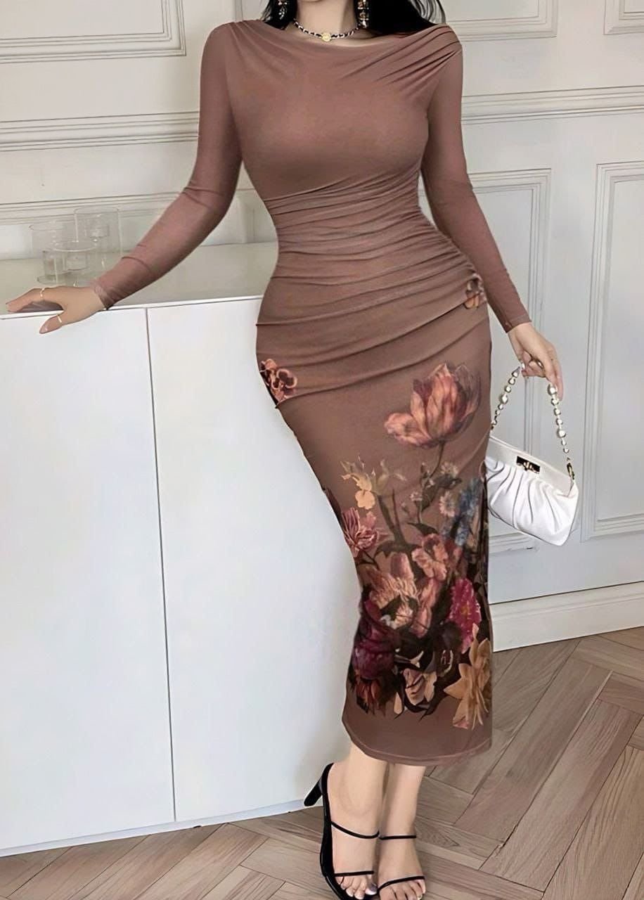Elegant Floral Mesh Bodycon Maxi Dress