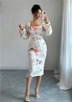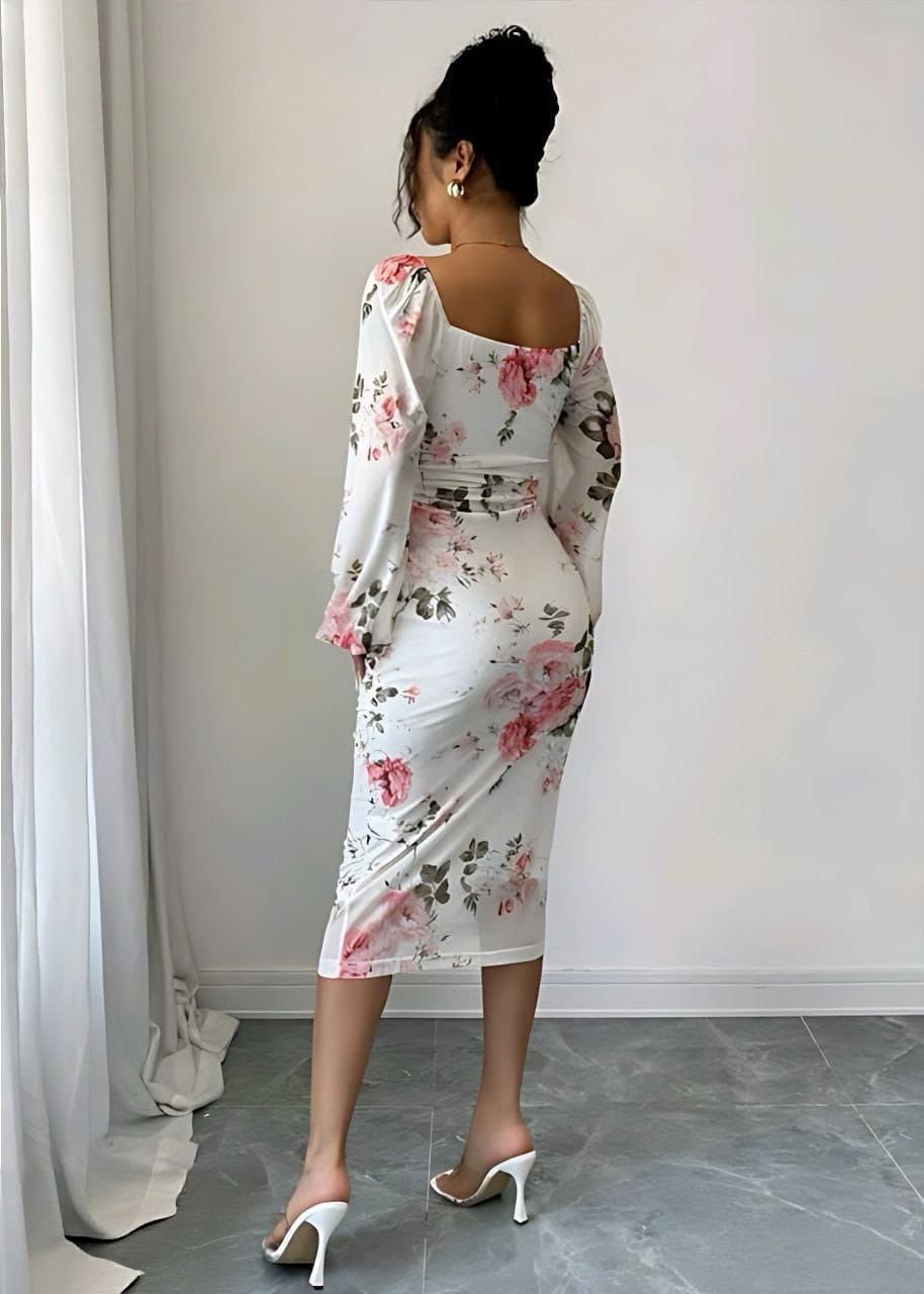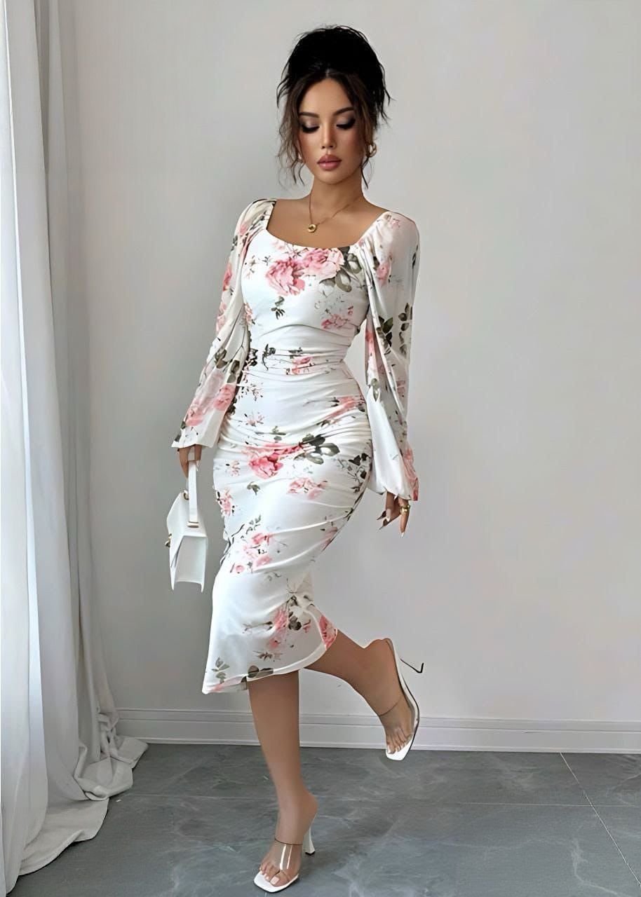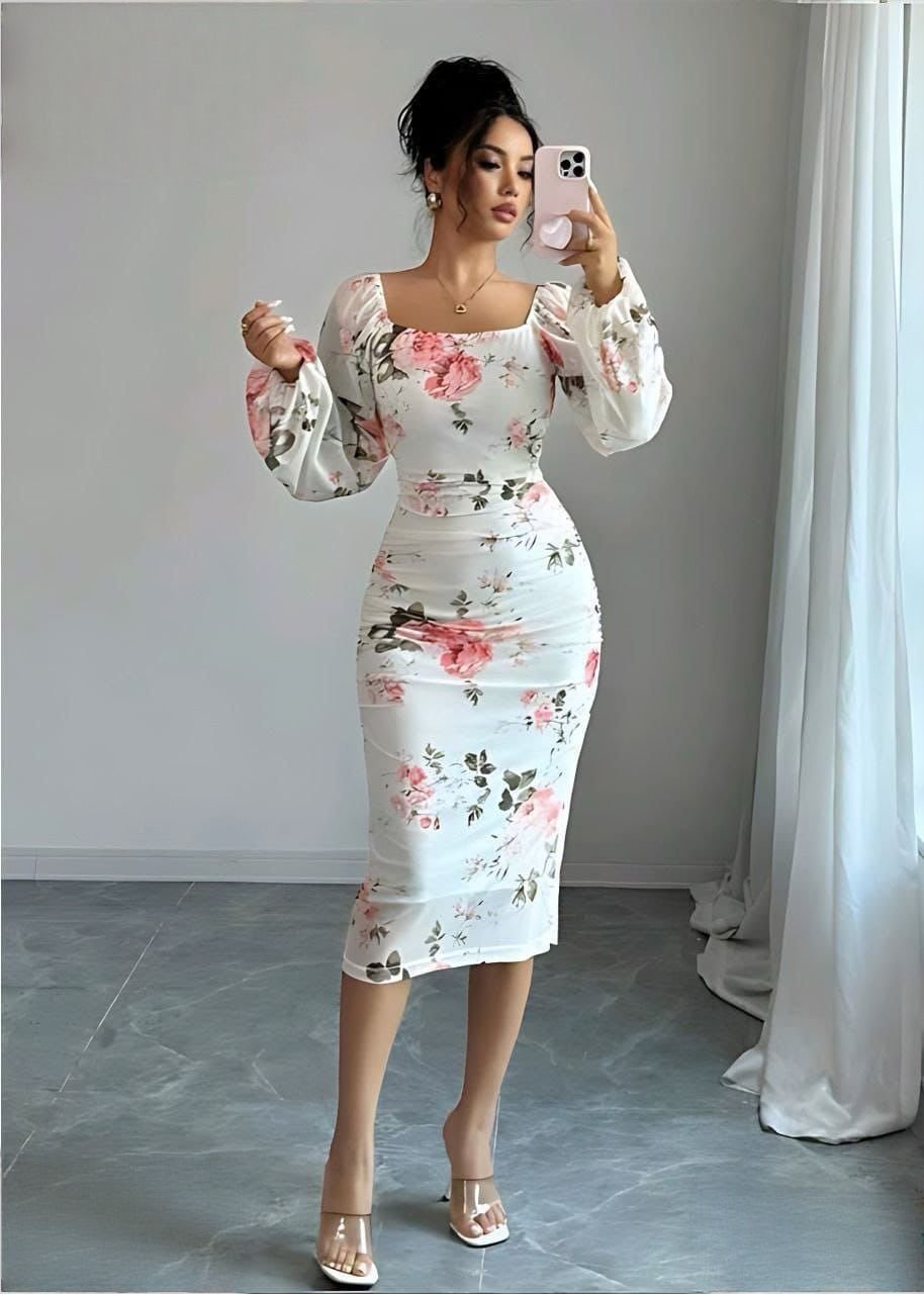 Be the first to review “Elegant Floral Ruched Bodycon Midi Dress” Cancel reply