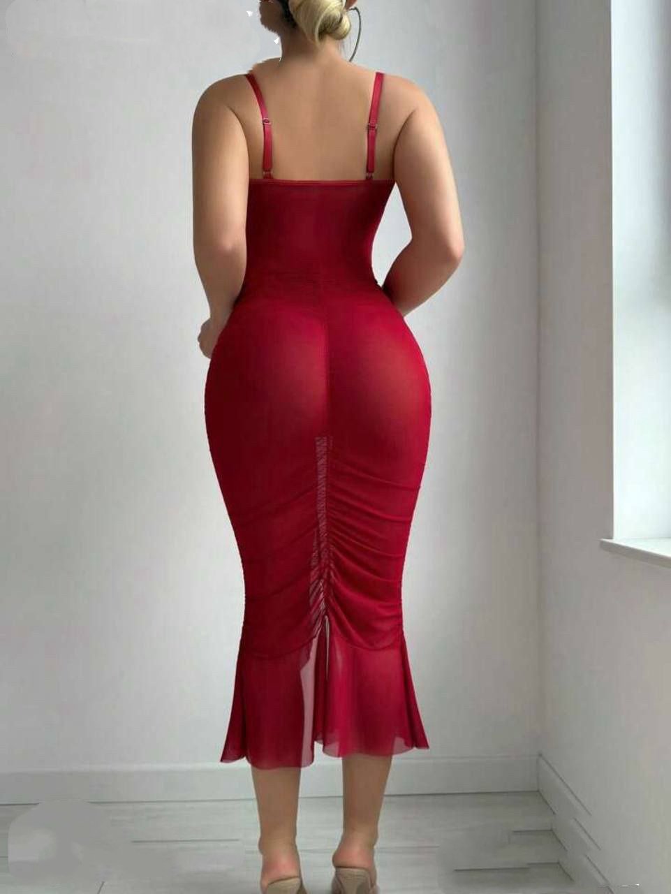 Electric Sensation: Sheer Lace Bodycon Dress Set
