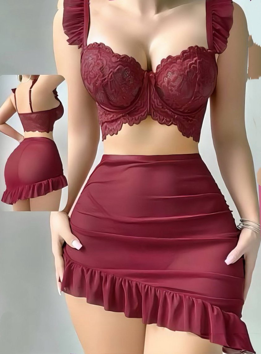 Be the first to review “Elegant Lace & Ruffle Two-Piece Lingerie Set” Cancel reply