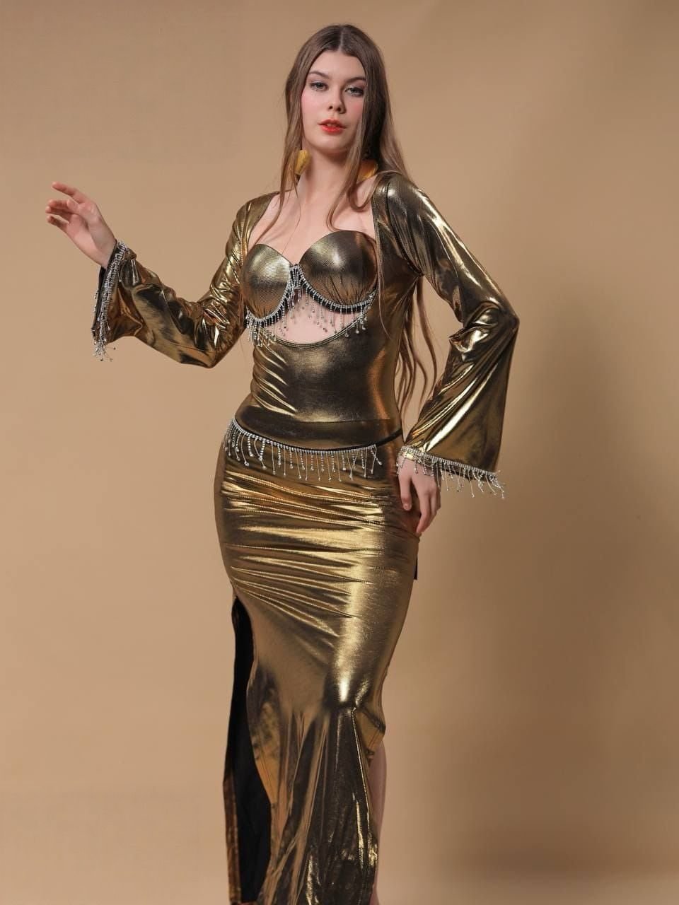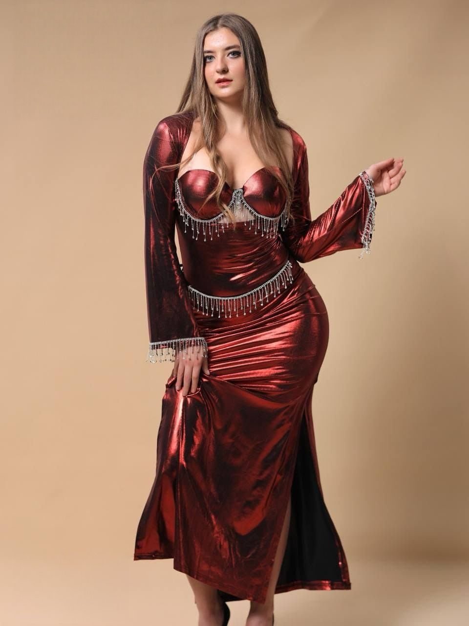 Be the first to review “Elegant Metallic Cut-Out Maxi Dress with Crystal Fringe” Cancel reply