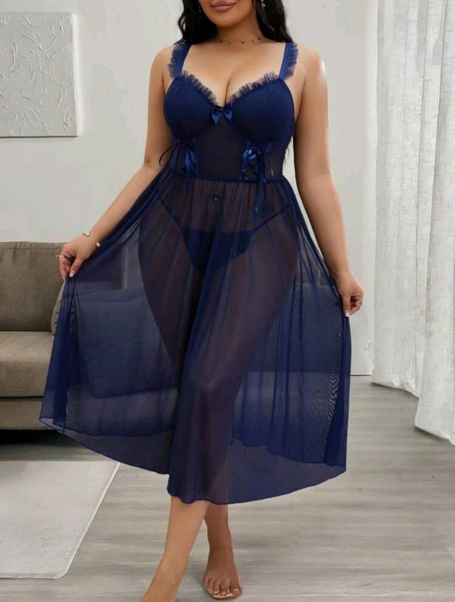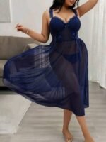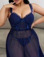 Be the first to review “Elegant Navy Blue Mesh Babydoll Nightgown Set” Cancel reply