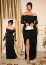 Be the first to review “Elegant Off-Shoulder Lace-Sleeve Evening Gown” Cancel reply