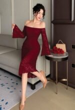 Be the first to review “Elegant Off-the-Shoulder Lace Midi Dress” Cancel reply