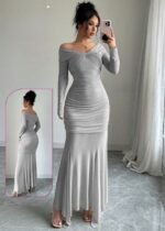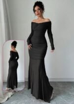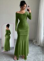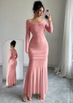 Be the first to review “Elegant Off-the-Shoulder Ruched Mermaid Gown” Cancel reply