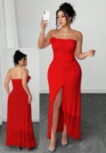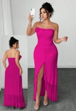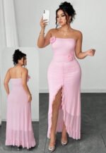 Be the first to review “Elegant Periwinkle Strapless Rosette Maxi Dress” Cancel reply