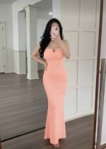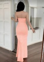 Be the first to review “Elegant Ribbed Strapless Maxi Dress – Peach Pink” Cancel reply