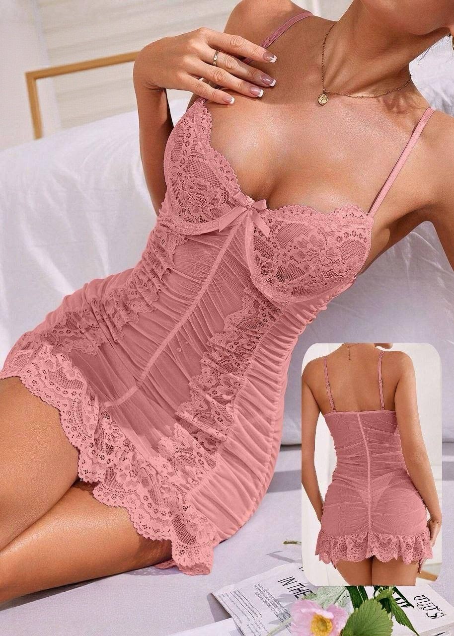 Be the first to review “Elegant Rose Pink Lace Nightdress” Cancel reply