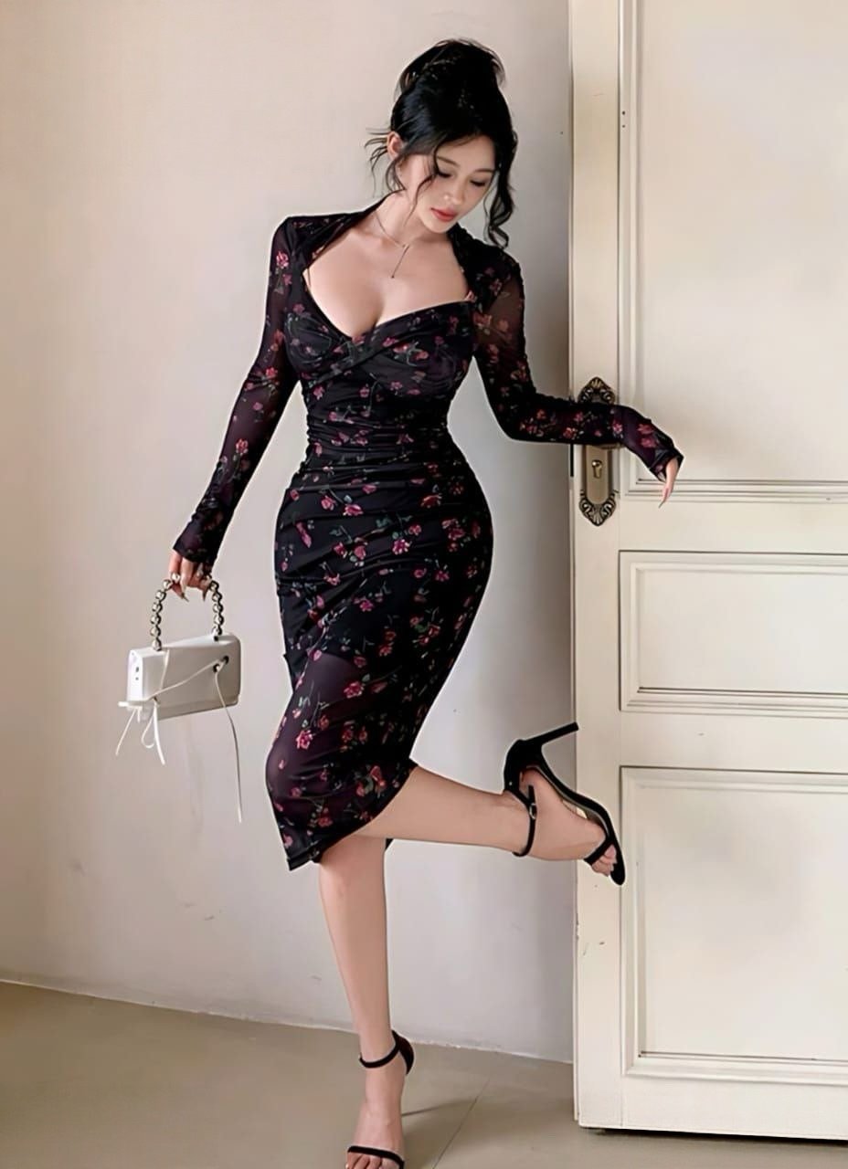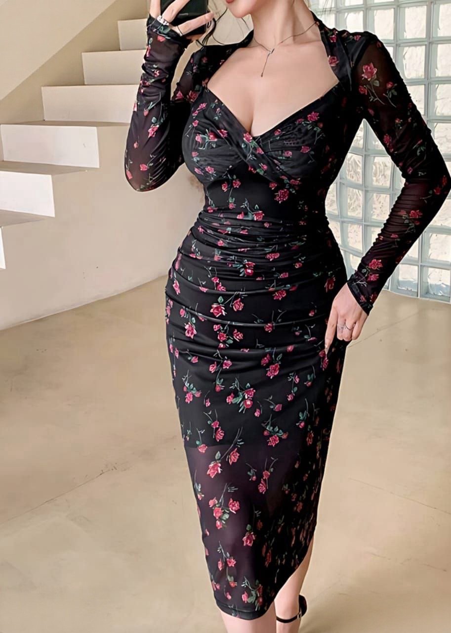 Be the first to review “Elegant Rose Print Ruched Midi Dress” Cancel reply