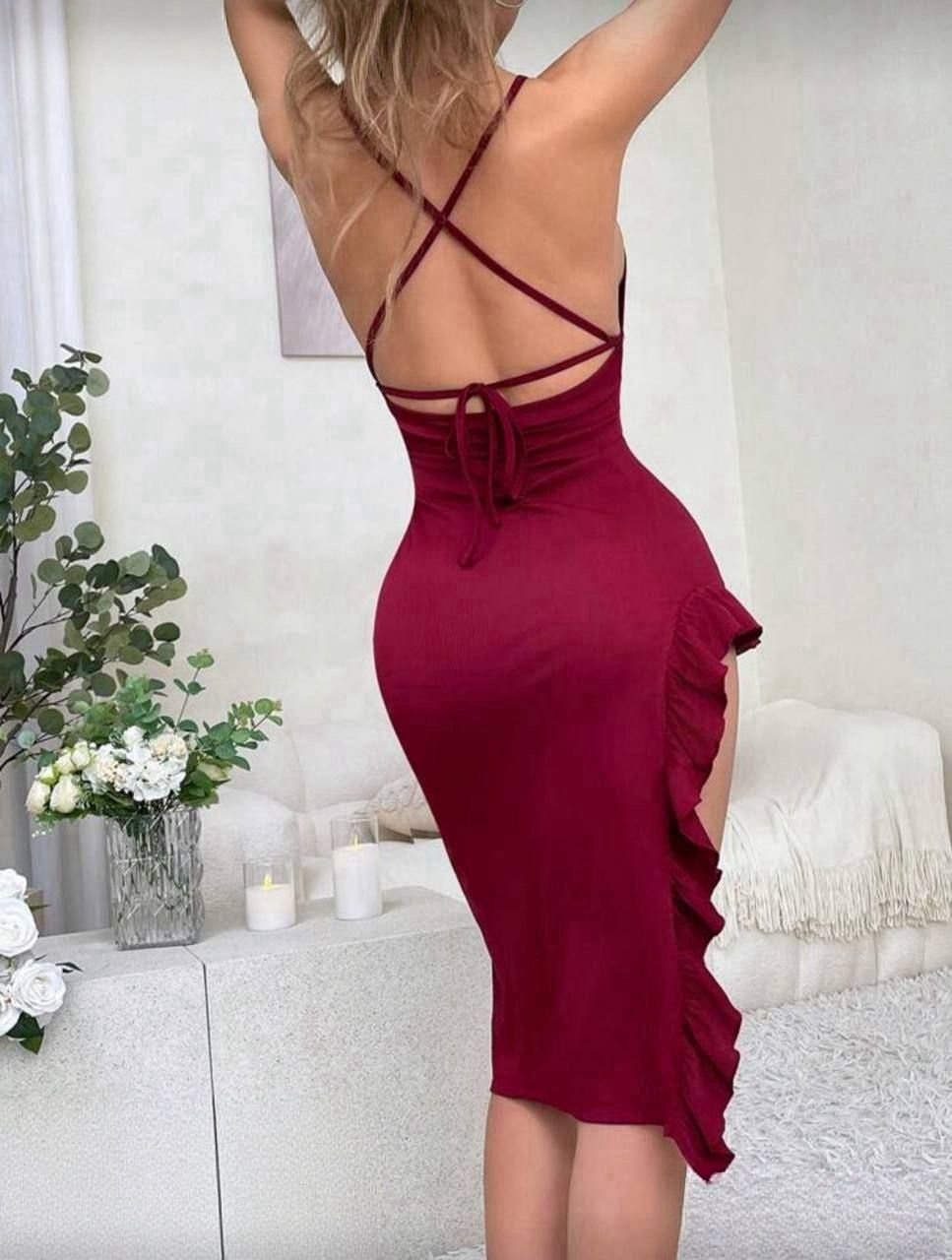 Be the first to review “Elegant Ruffled High-Slit Midi Dress” Cancel reply