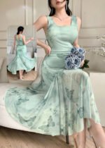 Be the first to review “Elegant Sage Green Butterfly Print Midi Dress” Cancel reply