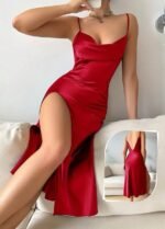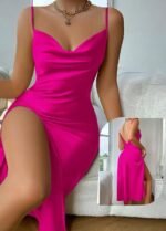Be the first to review “Elegant Satin Cowl Neck Midi Dress” Cancel reply