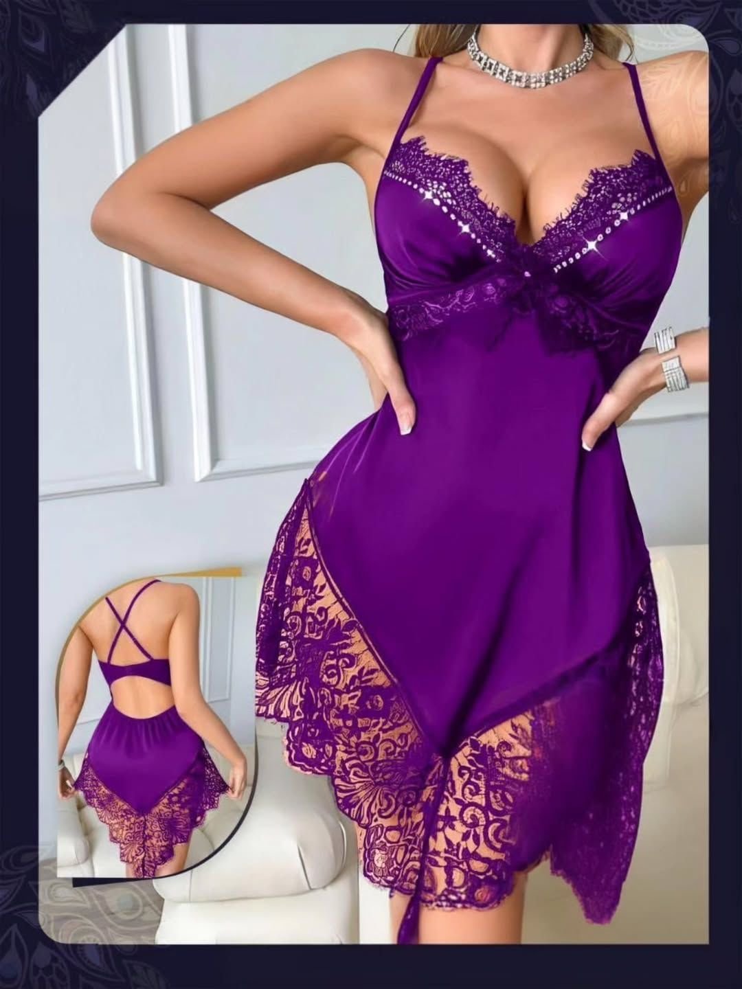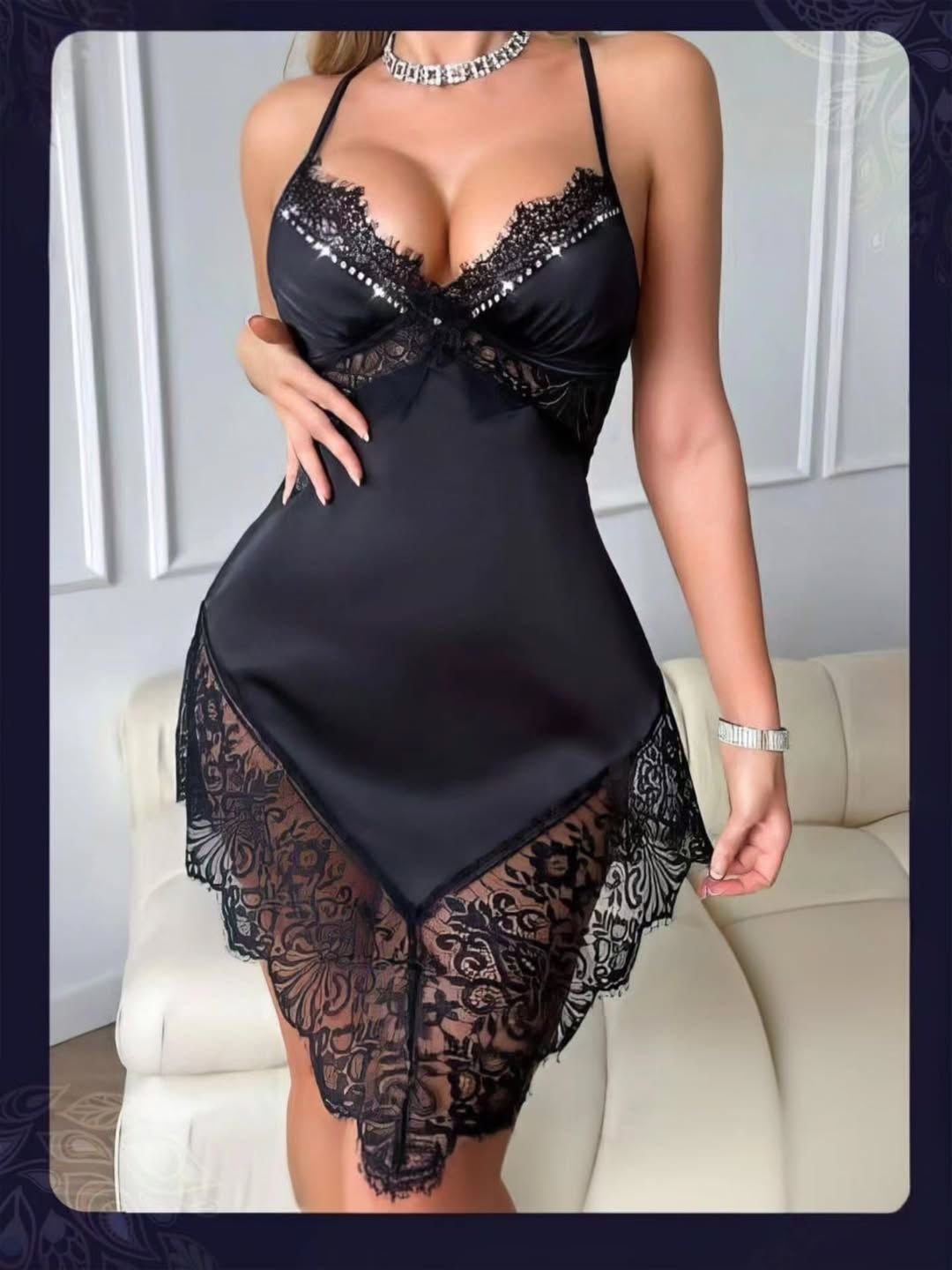 Be the first to review “Elegant Satin & Floral Lace Chemise Nightwear” Cancel reply