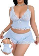 Be the first to review “Elegant Two-Piece Floral Lace Cami Top & Ruffle Shorts Lingerie Set – Baby Blue” Cancel reply