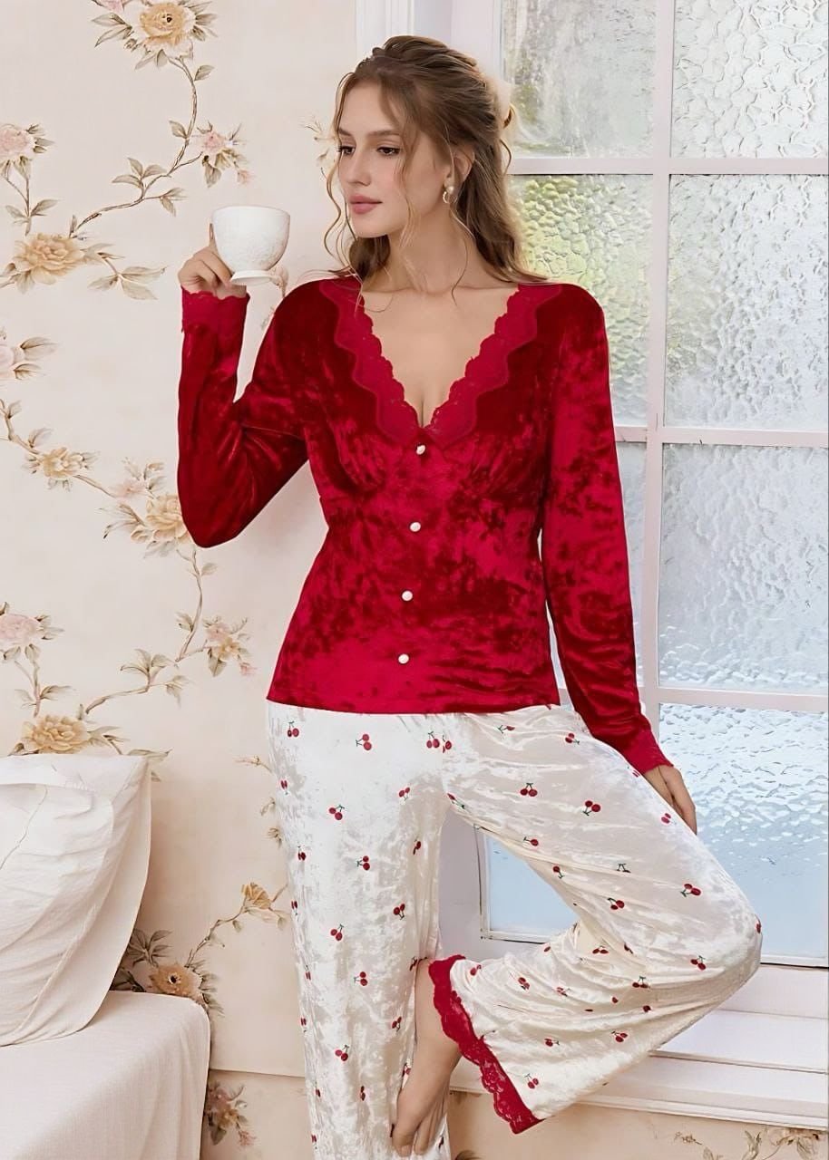 Be the first to review “Elegant Velvet Cherry Pajama Set” Cancel reply