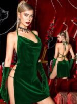 Be the first to review “Elegant Velvet High-Slit Halter Chemise Set” Cancel reply
