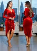 Be the first to review “Elegant Velvet Ruched Asymmetrical Dress” Cancel reply
