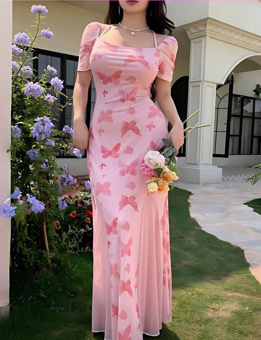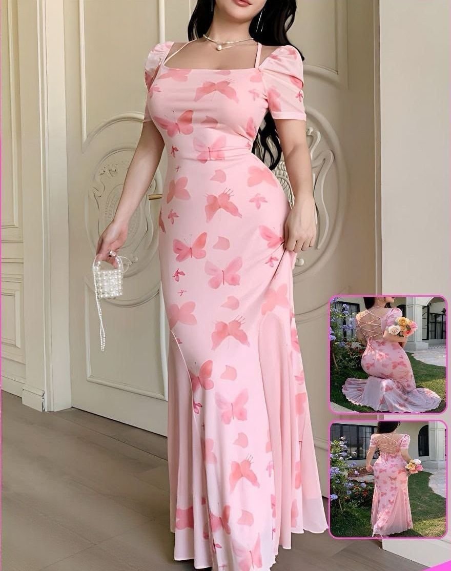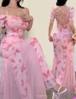 Be the first to review “Ethereal Pink Butterfly Print Lace-Up Maxi Dress” Cancel reply