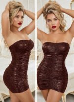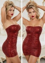 Be the first to review “Exquisite Shimmering Ruched Strapless Mini Dress” Cancel reply